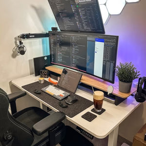 Found at the intersection of comfort and well-being, this bundle is the perfect way to bring a little ergonomics to your setup. Simply unroll the desk mat, attach the wrist rests, and watch as you glide across your desk space, completing every task with greater ease.